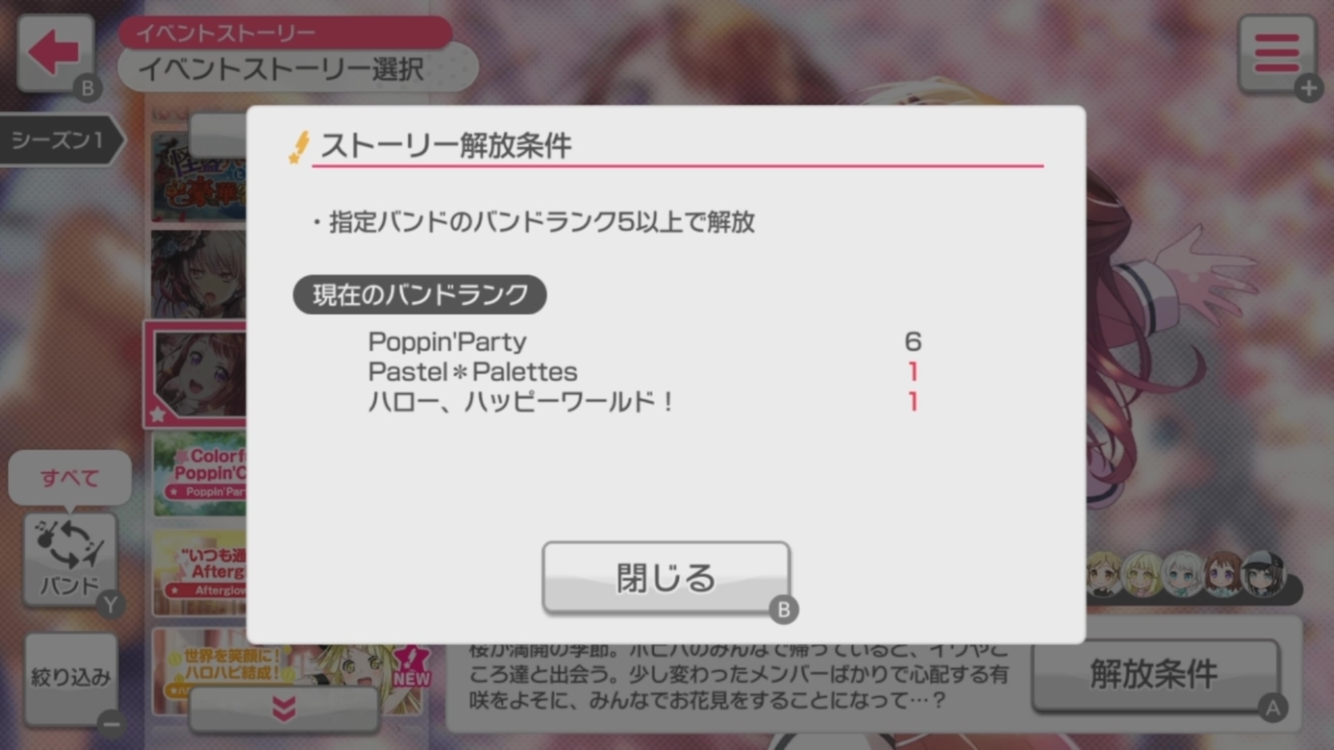 스토리는 메인 스토리를 비롯해서 각 밴드 별 스토리, 역대 이벤트의 스토리도 다시 볼 수 있게 되어있습니다. 모바일에서 넘어온 유저라면 기본적으로 내용을 알고 시작하겠지만, 스위치로 시작한 유저는 모를 수도 있다보니 배려하는 측면인 것 같은데, 여기서는 이런 스토리를 통해 재화를 수급해야 하기 때문에 어쩔 수 없긴 하지만 반 필수로 시청을 요하기는 합니다.