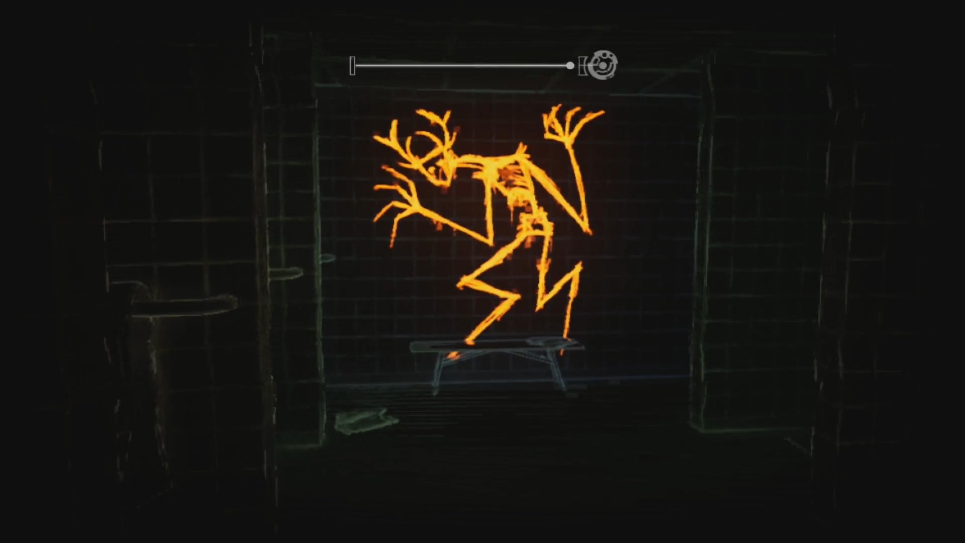 시설이 전반적으로 어둡고 가시거리가 짧은 구간이 많다보니, 짧은 거리나마 적외선 카메라처럼 볼 수 있는 신의 시야라는 것도 있습니다. 눈 앞에 보이는 것을 어느정도 알아보기 쉽게 표시해주기도 하고, 획득해야 할 아이템이나 상호작용이 가능한 장치를 표시해주기도 해서 여기저기 탐사할 때에도 꼭 필요한 기능이긴 합니다. 특히 신의 시야로만 볼 수 있는 힌트나 표식도 있어서 자주 껐다 켜는 요소이기도 합니다.