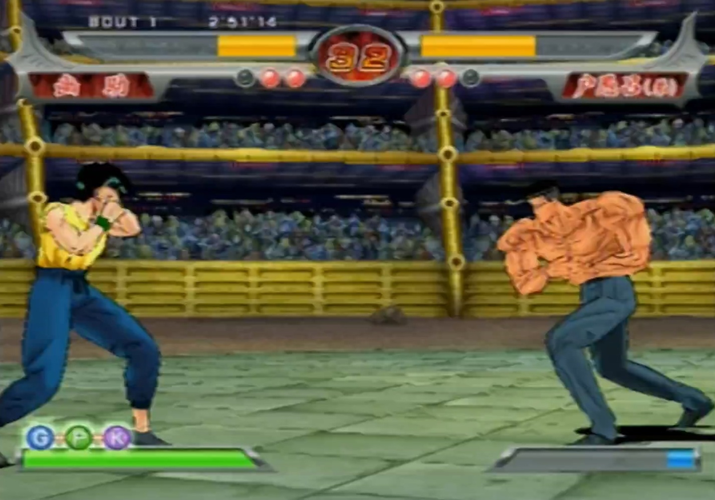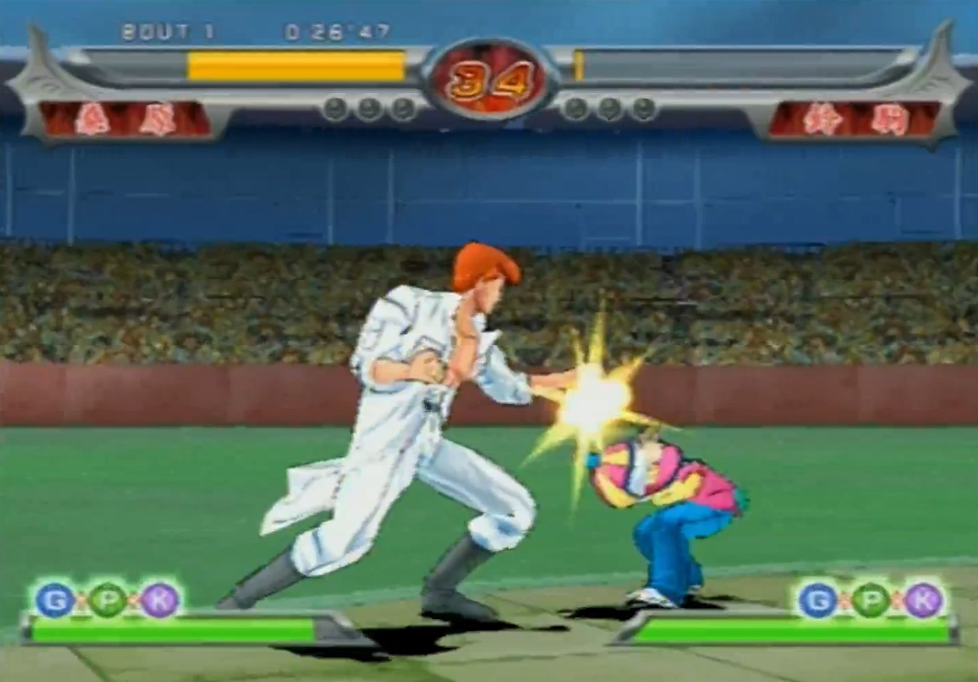 버추얼 파이터처럼 펀치, 킥, 가드 3개 버튼을 사용하며 통상 공격과 기를 소모하는 공격, 일정 시간 동안 변신하는 진심모드 등, 조금 더 체계적이고 진지한 격투 게임을 표방하고는 있습니다. 거기에 상중하단이 나뉘어져 있고 방향에 맞는 잡기는 물론이고 커맨드를 이용한 기술이나 연속기까지 있는 등, 전작에 비해서는 나름 준비를 한 편입니다. 거기에 캐릭터 별로 체형이 차이가 있다보니 상단 기술은 키가 작은 캐릭터에 맞지 않는 등, 꽤 판정도 세밀한 편입니다.
