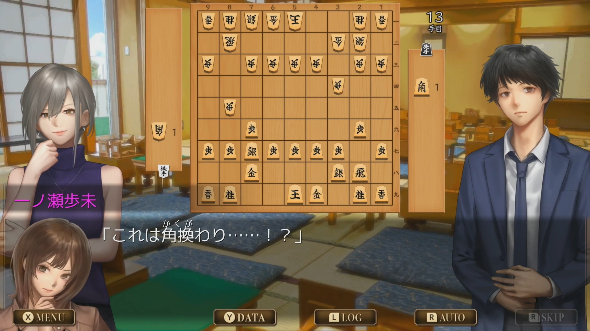 각 챕터마다 초중반에는 쇼기로 된 퍼즐을 풀어나가며 사건의 경위를 파악하고 비밀을 파헤쳐나가는 구성으로 되어있습니다. 기본이 비주얼 노벨이라 플레이어가 탐색을 직접적으로 하거나 취해야 할 액션은 거의 없고, 선택지나 장소 이동만으로 해결하는 정도입니다. 조금 지루한 면이 있는 편인데, 약간은 불필요한 대화나 대사를 통해 진행이 조금 늘어지는 부분도 있어서 특히 그런 경향이 있기도 합니다
